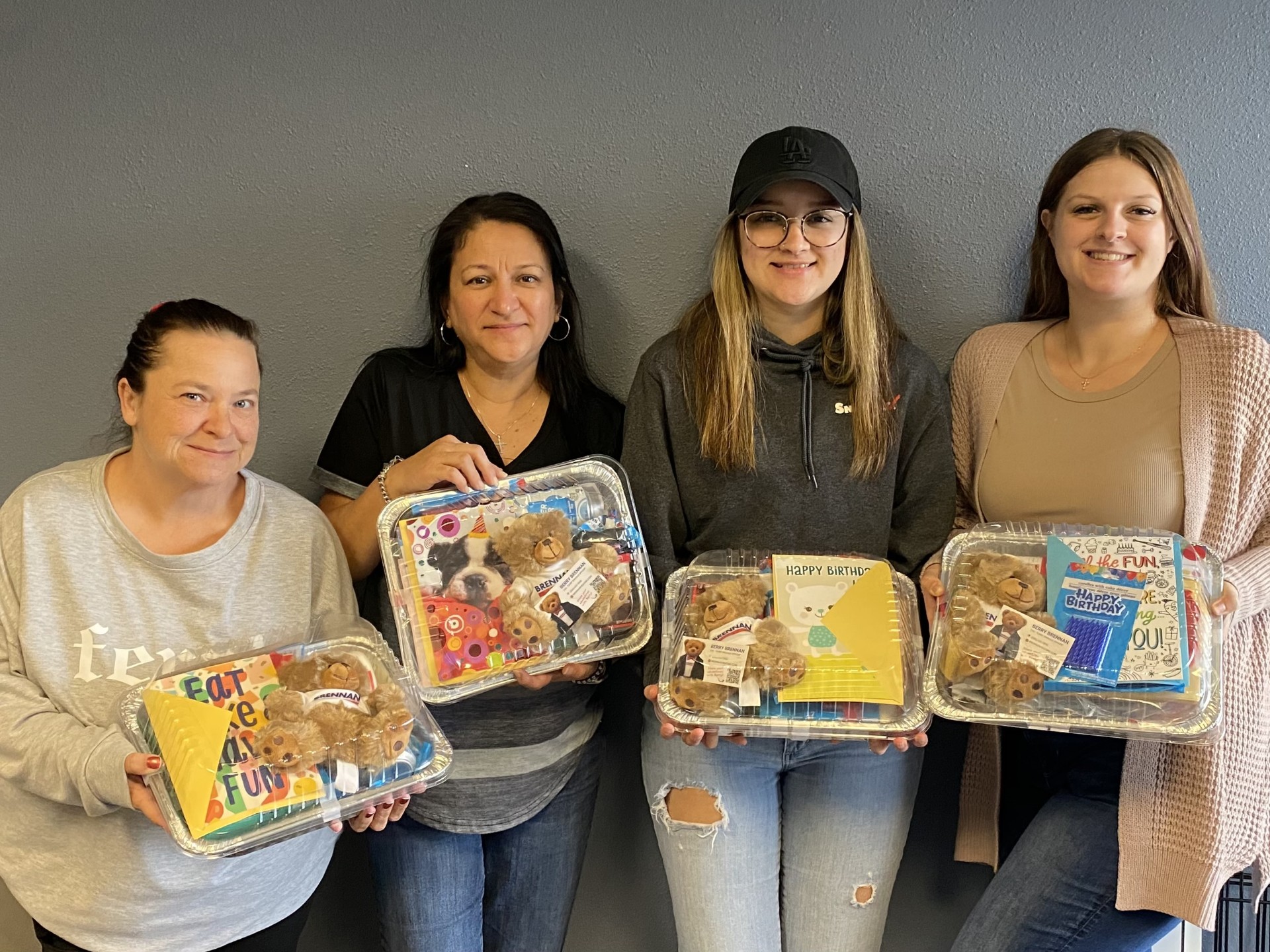 Berry helped the Brennan Lakewood team assemble birthday kits for children and caregivers at HopeSparks.